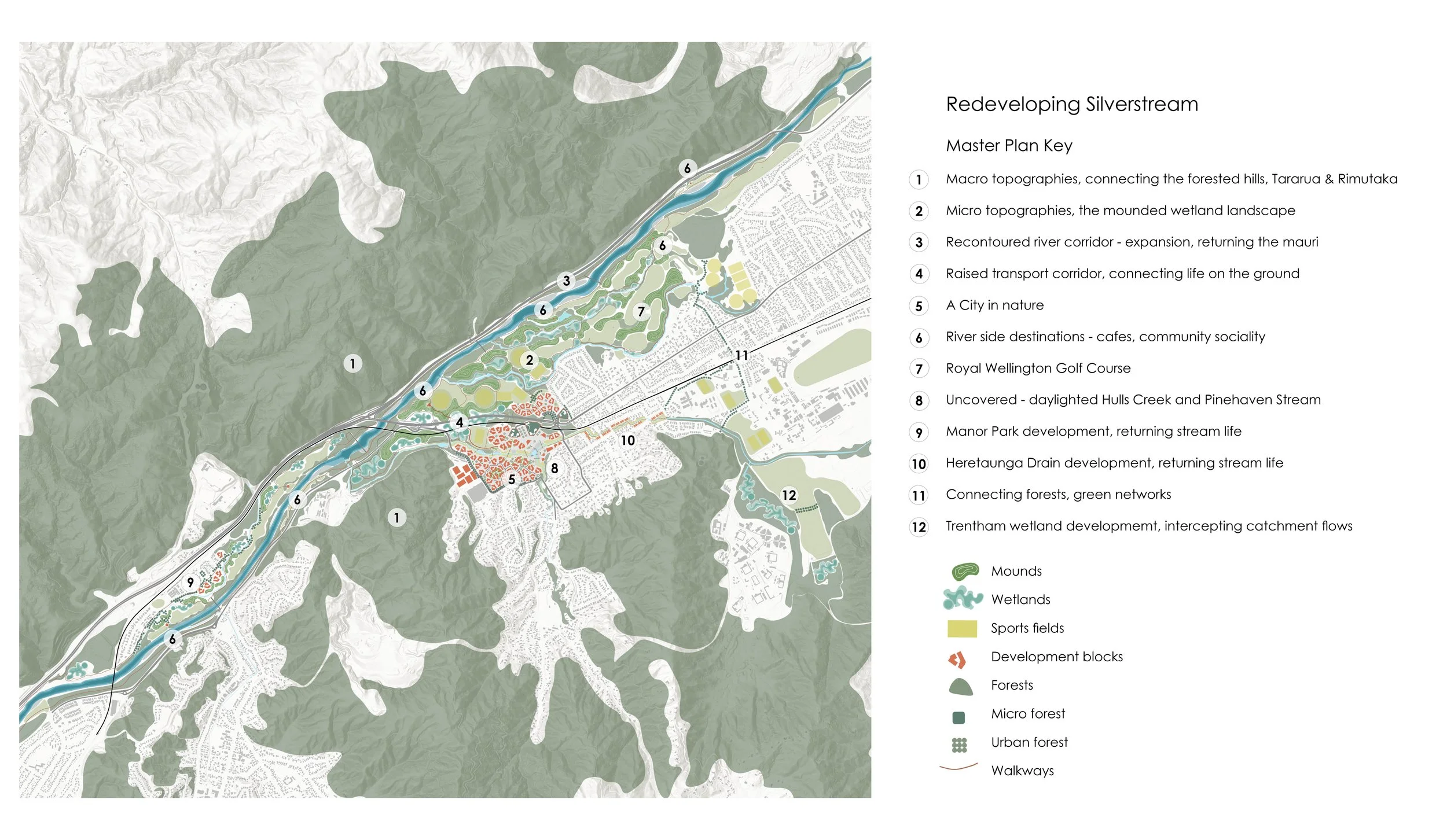 University Masters project gallery, capstone studio project, re-structuring Silverstream Village in Upper Hutt, Wellington Region.